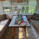 De caravan, die pal naast de ingang van ons park staat is is ook van binnen te bezichtigen, wil je even binnenkijken, vraag het bij de receptie.
